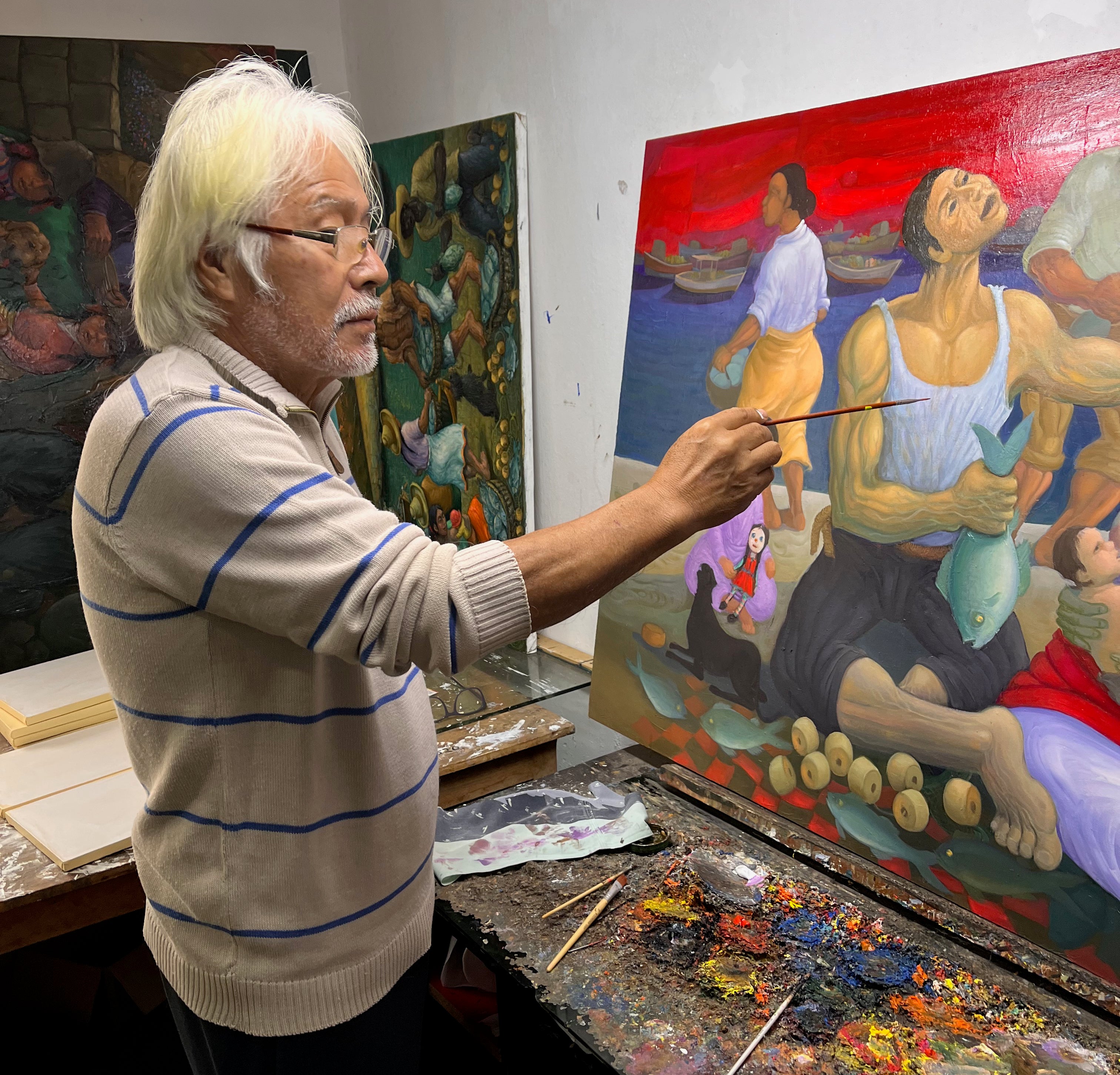 Roger Vejarano Mesarina is a Peruvian painter whose work is characterized by a deep connection to the cultural identity and traditions of Peru. Born in Lima, he developed an artistic vocation from an early age, which led him to study at the National School of Fine Arts of Peru , where he consolidated his academic and technical training in the visual arts.